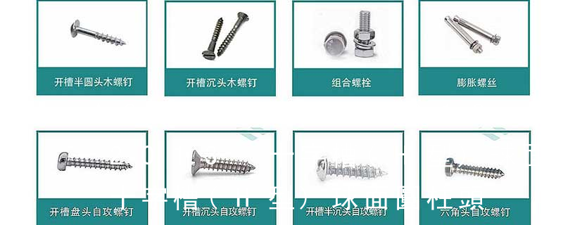 B:球面圓柱頭; C:圓柱頭; F(K):沉頭; H:六角頭;HW:六角頭帶墊圈; O:半沉頭; P:平元頭; R:半元頭;PW:平元頭帶墊圈; T:大扁頭; V:蘑菇頭;④ 螺釘牙型 A:自攻尖尾(日標(biāo)第1種)疏 外扳擰:六角、六角法蘭面、六角凸緣、六角花形等;內(nèi)扳擰:一字槽、十字槽H型(Phillips)、十字槽Z型(Pozidriv)、十字槽F型(Frearson)、四方槽(Scrulox)、復(fù)合槽、內(nèi)花鍵、內(nèi)六角花形(梅花槽)、內(nèi)三角、內(nèi)六角