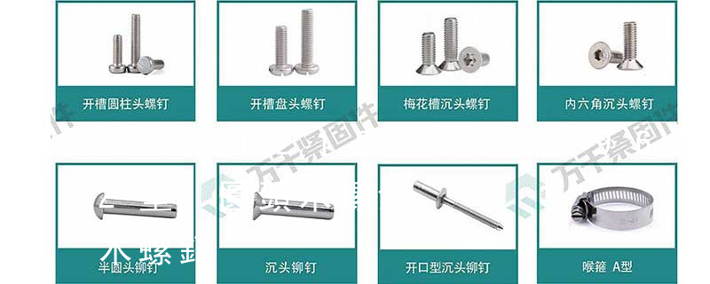 1、頭部形狀 頭部形狀各式各樣。有圓頭(半圓頭)、扁圓頭、圓頭凸緣(帶墊)、扁圓頭凸緣(帶墊)、盤頭、盤頭凸緣(帶墊)、沉頭、半沉頭、圓柱頭、球面圓柱頭、喇叭頭、六角頭、六角法蘭頭、六角凸緣(帶墊)頭等。
